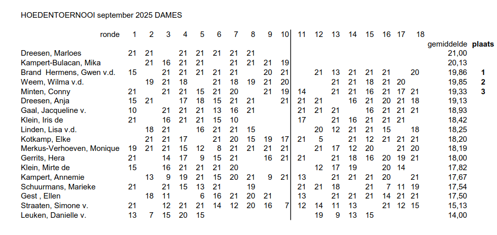 Op 1 en op 8 september was het weer zover, het Hoedentoernooi, het eerste toernooi van dit seizoen.